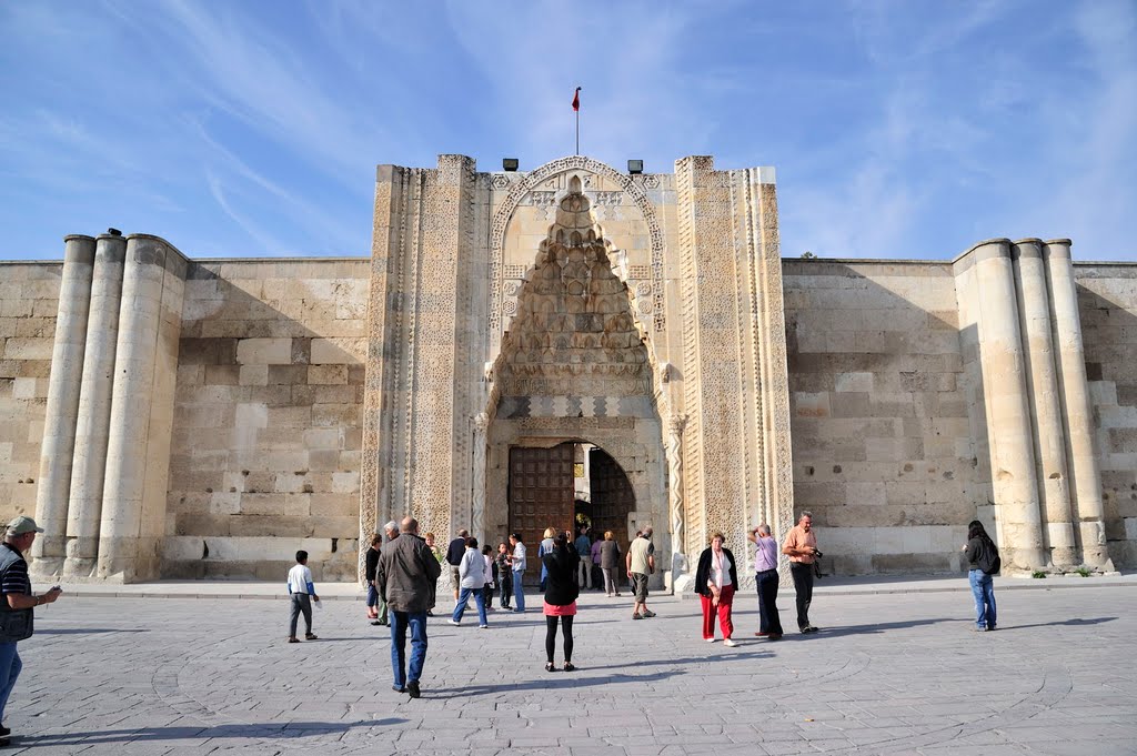 Struktur berbenteng ini dibangun pada tahun 1229 (bertanggal dengan prasasti), pada masa pemerintahan sultan Seljuk Kayqubad I (memerintah 1220-1237), oleh arsitek Suriah Muhammad ibn Khalwan al-Dimashqi (Dimashqi artinya dari Damaskus) di sepanjang rute perdagangan Uzun Yolu (jalan panjang)