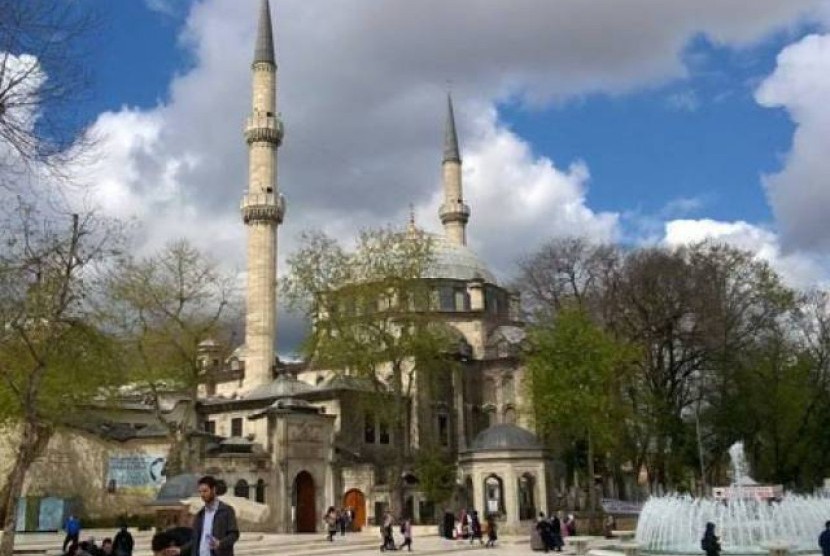 Masjid Sultan Ahmed Masjid ini dikenal dengan juga dengan nama Masjid Biru karena pada masa lalu interiornya berwarna biru. Masjid ini dibangun antara tahun 1609 dan 1616 atas perintah Sultan Ahmed I, yang kemudian menjadi nama masjid tersebut. Ia dimakamkan di halaman masjid. Masjid ini terletak di kawasan tertua di Istanbul, di mana sebelum 1453 merupakan pusat Konstantinopel, Jaraknya cukup dekat dengan Istana Topkapı, tempat kediaman para Sultan Utsmaniyah sampai tahun 1853 dan tidak jauh dari pantai B osporus. Dilihat dari laut, kubah dan menaranya mendominasi cakrawala kota Istanbul.